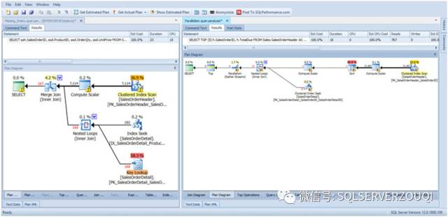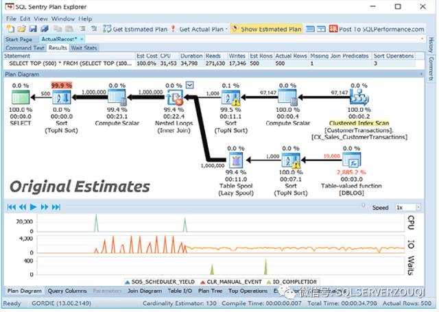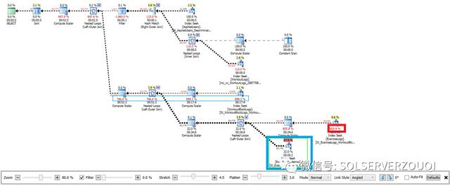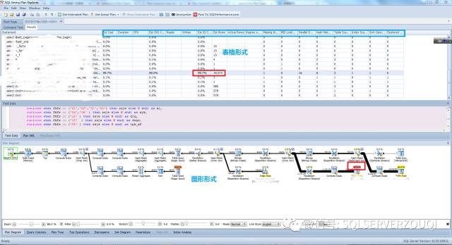 1. 通过执行计划表格或图形形式,快速定位存储过程中的哪个语句Statement使用总资源最多(百分比),IO读写的比较多(线的粗细)。