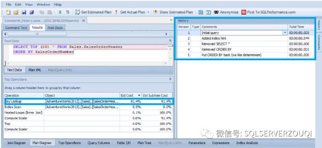 6. 还可以记录语句调优中修改历史,帮助你查看前后的对比。你可将上下文注释添加到计划的任何版本,然后保存并与共享给其他人。