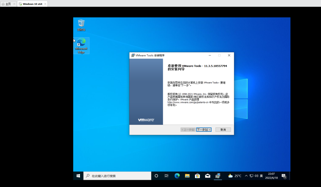 然后win10系统右下角就会提示DVD驱动器:VMware Tools, 点击它,运行setup64.exe: