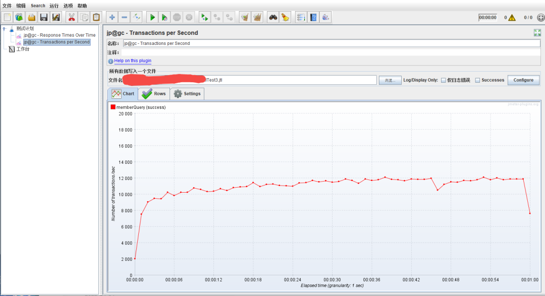 添加Transactions per Second监听器,加载压测结果jtl文件查看接口响应时间曲线图: