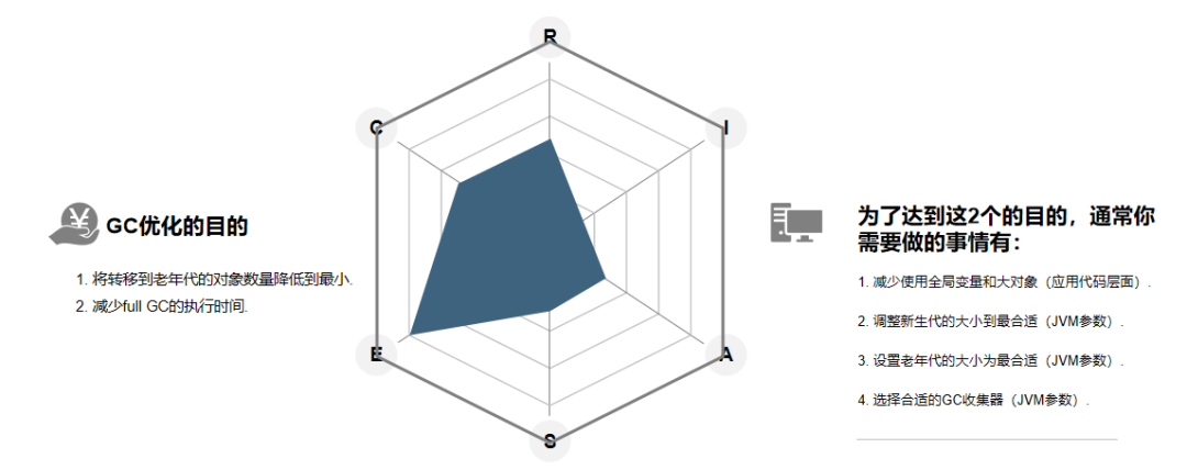 3、但是,你需要时刻铭记一条:GC优化永远是最后一项任务。当出现性能问题时,如果你已经设置过JVM参数,那么GC优化永远不应该是第一优先选项,先排除服务器、数据库、程序代码常见性能问题后,再着手监控优化GC也不迟。