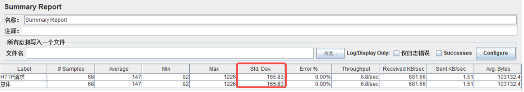 标准偏差的值越小,则说明各个样本的响应时间越接近平均值,一定程度上也表明系统更加稳定.