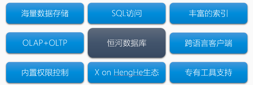 恒河大数据平台主要有两大体系组成,即恒河大数据管理平台和恒河NewSQL数据库。其中恒河大数据管理平台(HengHe Iris),实现对恒河大数据平台两大产品生态,即开源大数据产品生态和恒河大数据产品生态的统一运维管理。恒河NewSQL数据库是一种支撑大数据应用的新型数据库,采用分布式架构设计,拥有满足大数据应用的分布式存储和分布式并行计算的能力,同时兼具关系型数据库的数据类型Schema、索引管理、标准SQL访问支持、轻量级JDBC驱动等相关技术特性,同时研发了针对恒河数据库的内置计算引擎——X on HengHe(即Flink on HengHe\Spark On HengHe等),以支持内置对接主流分布式计算引擎,实现这些计算引擎能在HengHe NewSQL数据库上发挥出完美算力。拥有这样能力的HengHe NewSQL数据库,非常适合于OLAP和OLTP型应用,同时也能够很好的支持传统基于关系型数据的应用,平滑迁移过渡为大数据应用。恒河大数据平台产品生态如下图1所示,恒河NewSQL技术能力特性如下图2所示。当前赢时胜公司以恒河大数据平台基础设施为技术底座的数据中台解决方案,获得了广泛的行业认可,并且正在泛资管行业的很多龙头行业用户进行实际项目落地。