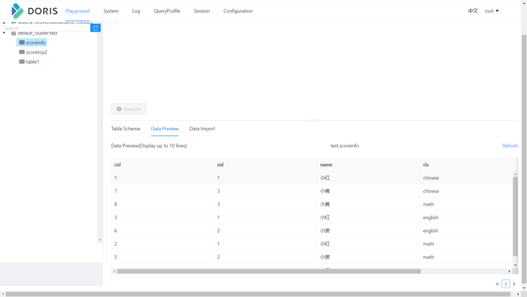 INSERT INTO `score` VALUES (9, 3, 'english', 100);Doris 成功被追加: