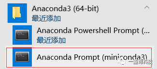 3.打开:Windows下打开Prompt命令行工具,使用默认的CMD无法找到conda命令,可添加环境变量