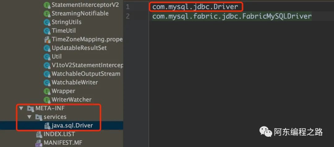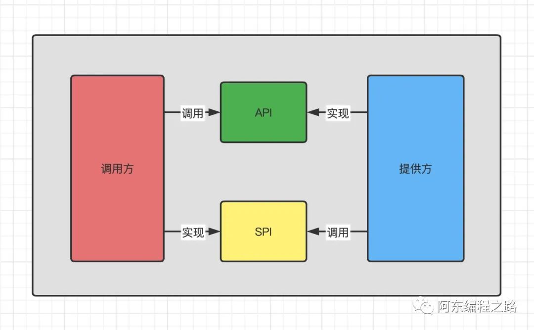 public interface SpiService {public void spiMethod();}public class SpiServiceImpl implements SpiService {@Overridepublic void spiMethod() {System.out.println("快关注「阿东编程之路」!");}}