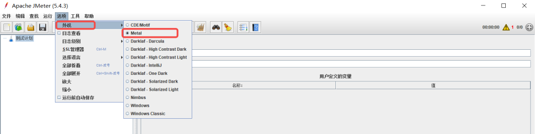 插一句:如何修改Jmeter背景色为白色,我是真的用不习惯黑色的那个背景: