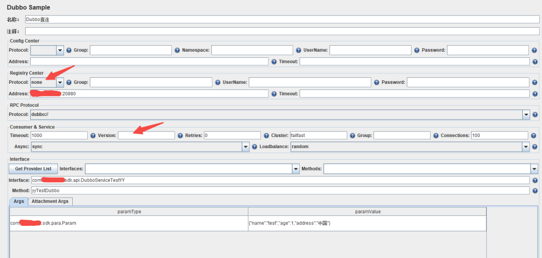 Version:版本,一般无需填写。Dubbo不同版本之间差异较大,不同版本之间不能互相调用。注意:默认这里填的是1.0,现在dubbo的版本都是2.xx了,因此直接删掉版本号,就让这里为空,不然用默认的1.0会调不通。最开始我没有管这个值,结果发现调不通,删了version的值就成功调通了。