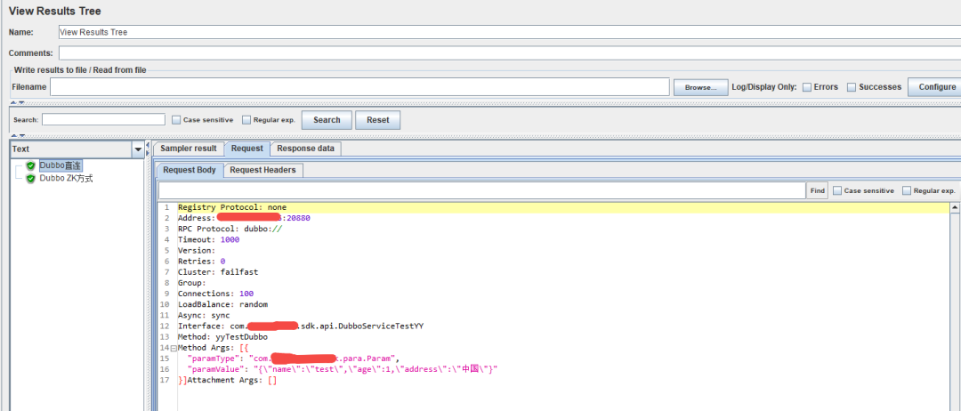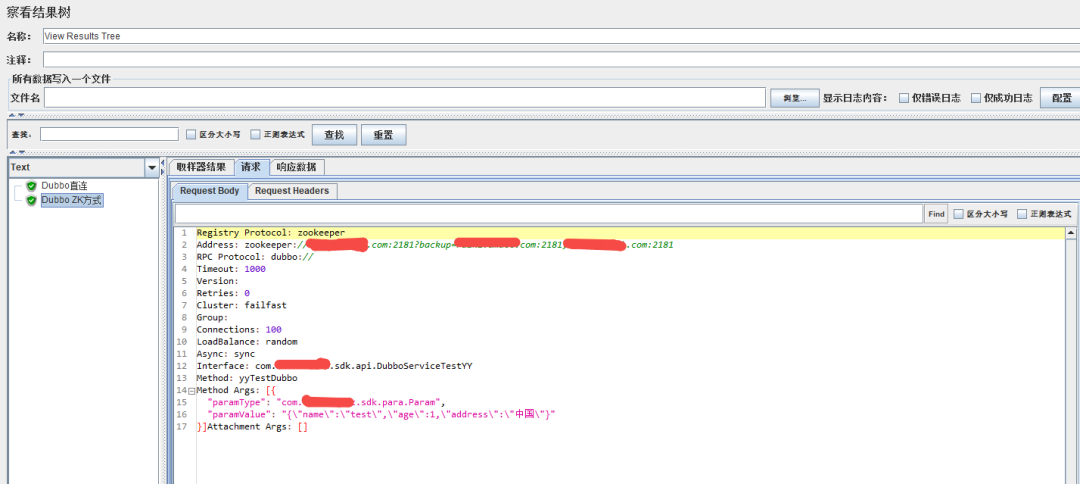 而实际测试的时候,发现我的ZK是对的,服务器也是正常运行的,也没有出现弹窗,Jmeter也会卡死。因此建议还是直接在下面手动输入Interface和Method吧。