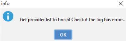 点击是,理论上正常的话会停顿一会儿,然后弹窗提示获取提供者列表成功!