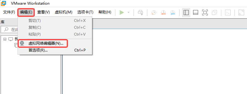 安装完成之后,系统会先初始化,根据提示一步步初始化即可。过程中可能会碰到说没有网络,先跳过。最后就可以正常进入系统了,这个时候发现没有网络,解决方案是虚拟机先关机,然后VMware菜单栏》“编辑”》“虚拟机网络编辑器”: