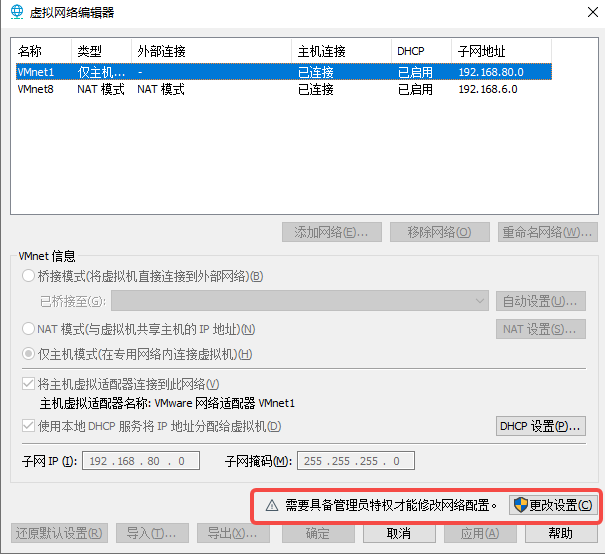 执行完毕后,再次运行虚拟机,会发现已经能正常连接上网络了。原理就是因为“还原默认配置”时,相当于重装了一下下VMWare的网络模块,所以解决了网络问题。