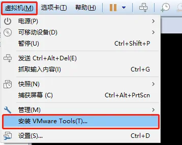 解决方法是需要安装VMware Tool,点击VMware菜单栏的"虚拟机"》“安装VMware Tools”,因为我截图的时候已经安装过了,所以截图上显示的是“重新安装VMware Tools”: