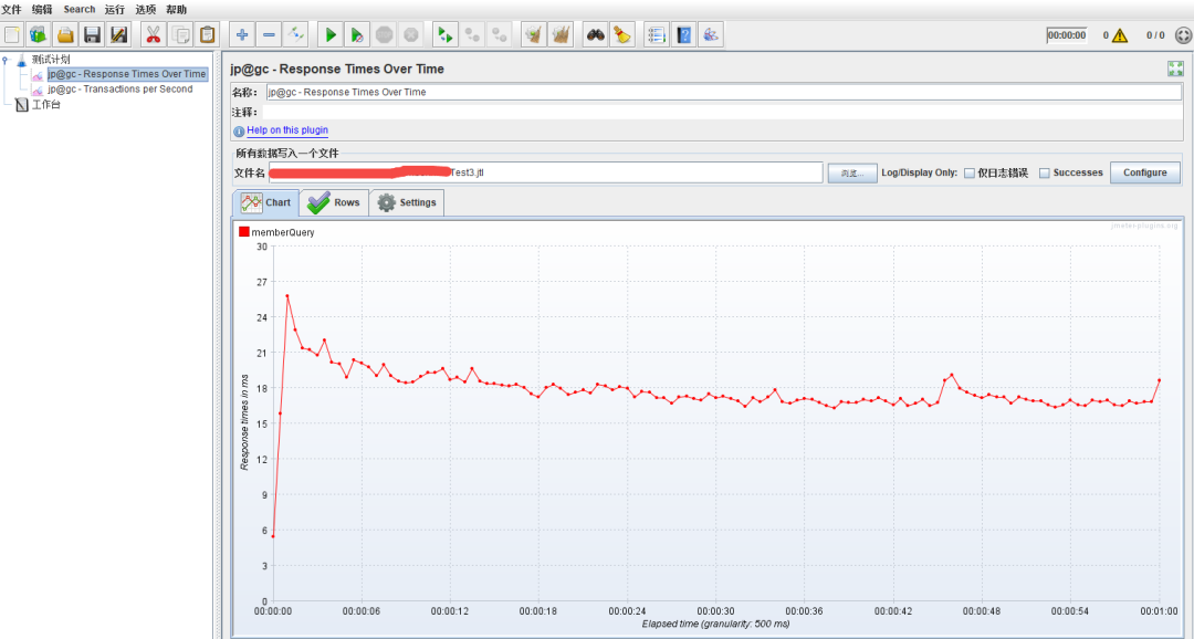 添加Transactions per Second监听器,加载压测结果jtl文件查看接口响应时间曲线图: