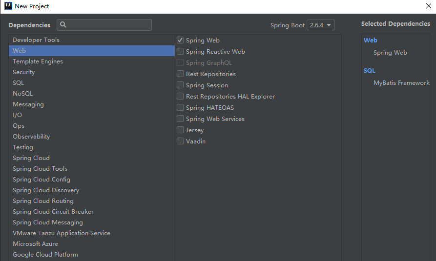 Idea直接创建一个springboot项目,创建时勾选上spring web, mybatis framework依赖