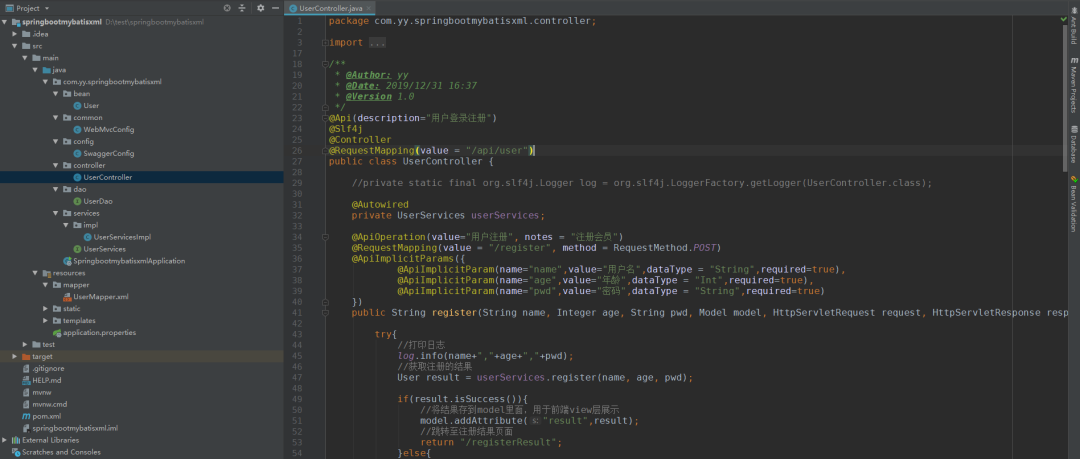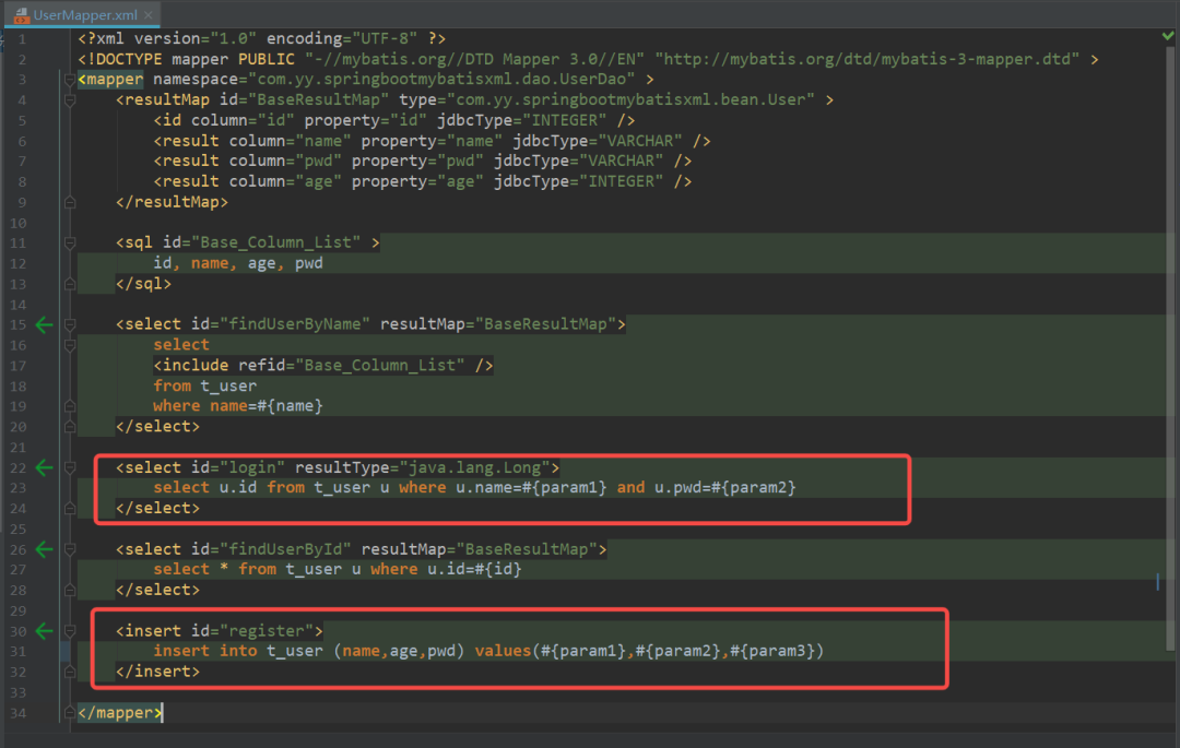 ├──UserMapper Mybatis mapper配置文件,管理数据相关方法具体语句实现