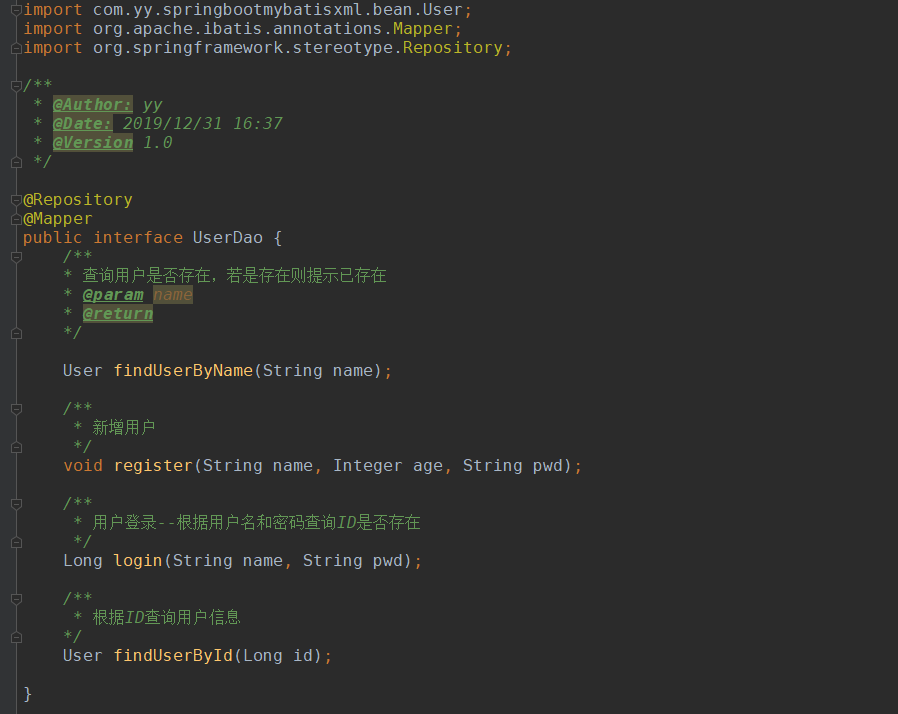├──UserDao 数据持久层,定义数据库相关接口方法