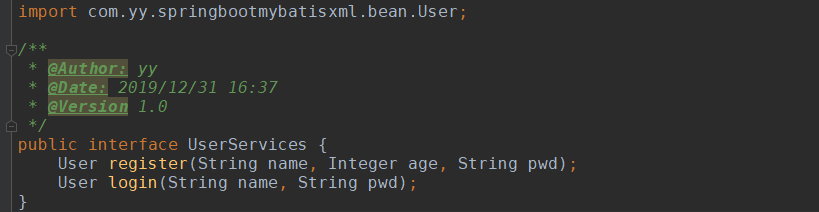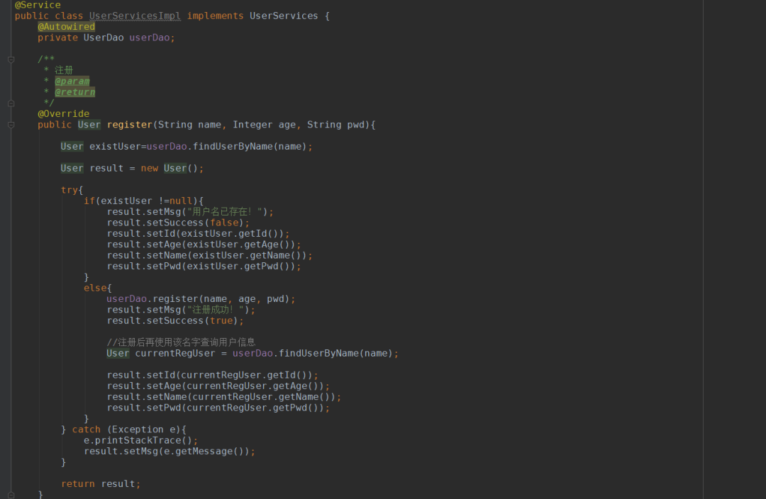 ├──UserServicesImpl 接口实现类,后端接口的具体方法实现