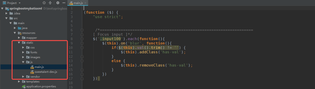 ├── SpringbootmybatisxmlApplication Springboot启动类