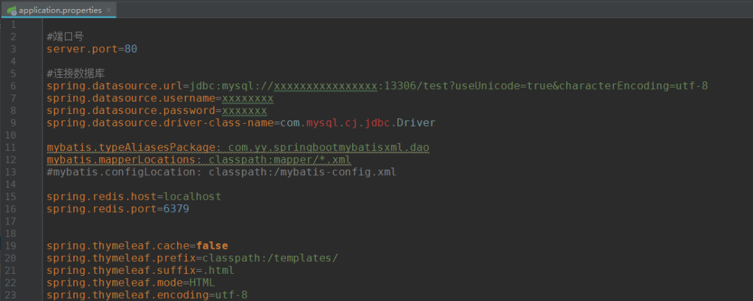 application.properties:配置文件,用于配置数据库、Redis等相关的配置信息,里面地址、用户名、密码记得换成你自己的可用的信息