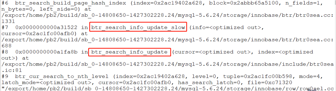 在pstack日志中,发现了很多 btr_search_info_update & btr_search_info_update_slow: