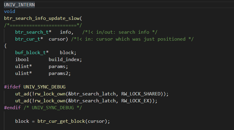 可以看到 rw_lock_s_lock(&btr_search_latch) 其中 btr_search_latch 是把全局锁。
