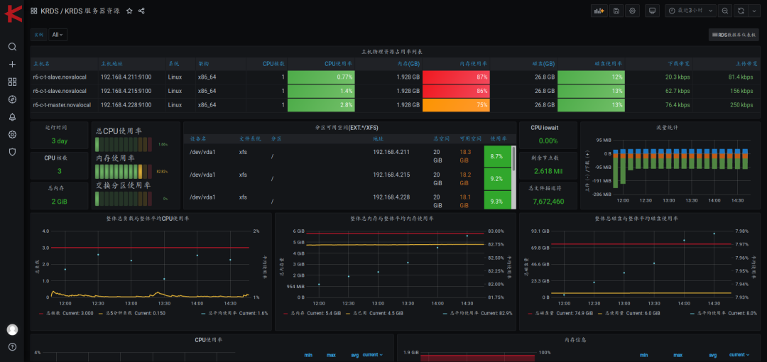 KRDS提供完善的监控告警能力,包括主机监控、性能监控、集群监控,面向主机、数据库、应用等多维度提供状态及性能指标监控服务,包括硬件资源(CPU、内存、网络及存储IO、资源配额等)指标、数据库(连接、活跃会话、长事务、锁、消息事件、后台维护进程、SQL队列等)指标的全面监控。