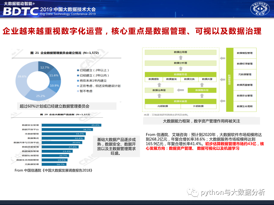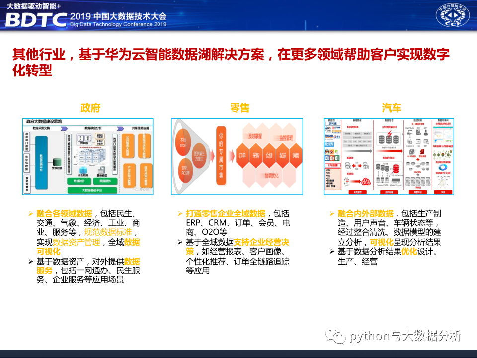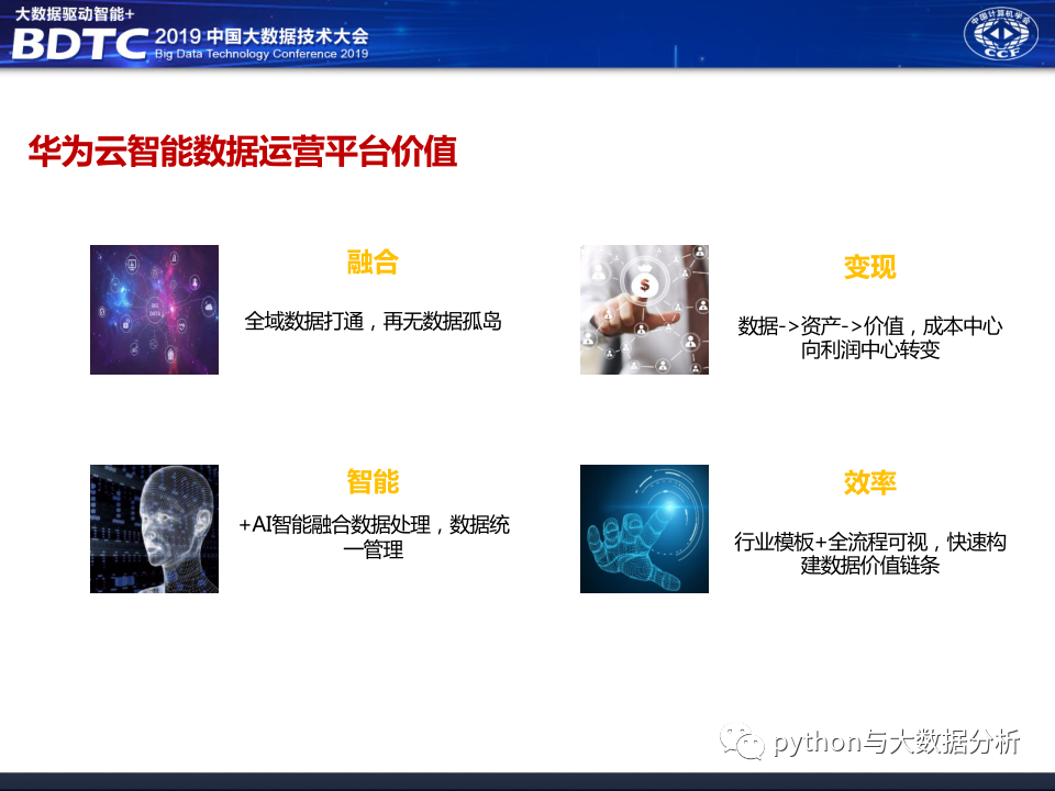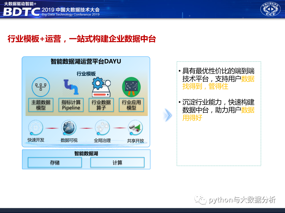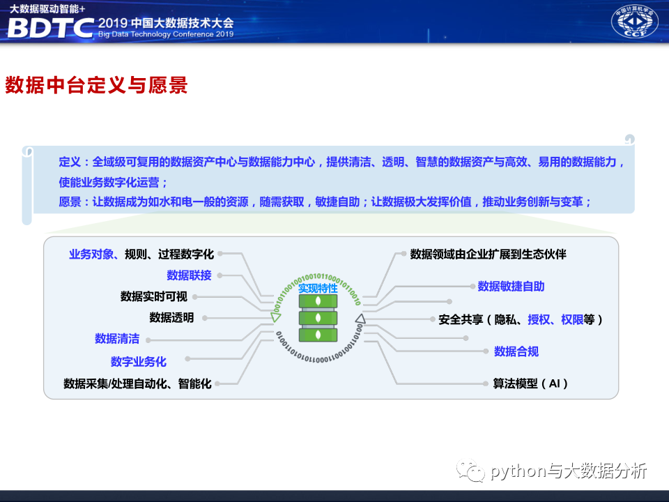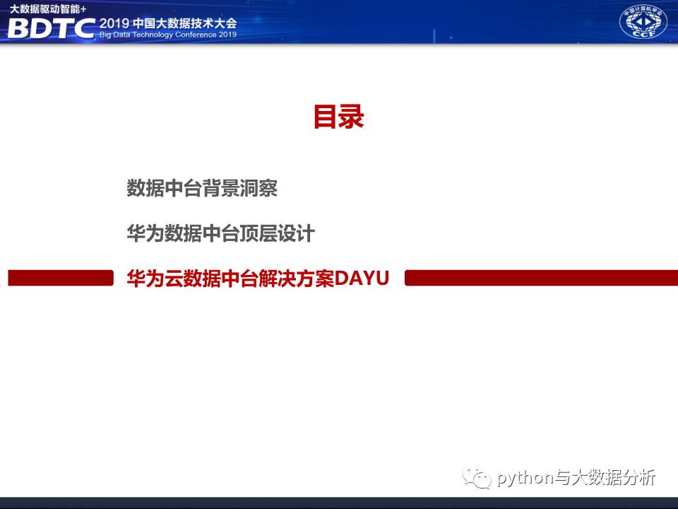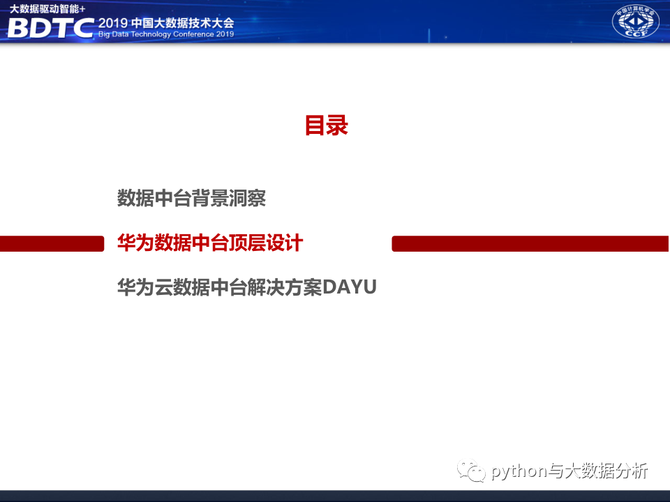 华为公司在2019年中国大数据技术大会上的分享《大数据中台架构分享》,华为公司的技术实力摆在那里,应该没什么大问题,不过和华为交流过好多次,华为只愿做平台厂商,不愿意做业务支撑厂商,或许与华为公司的人力单价太高有关系吧,也让人有点怀疑华为对行业的深耕的决心。