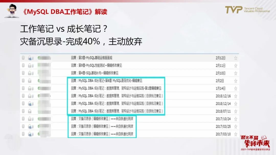 写书的缘起,其实是一件很简单的事情。我最大的感触就是记忆打卡,如果处理了一个问题,那么我希望把这个问题的完整过程复现出来,这样下来处理的时候我可以完全按照博客的内容能够快速解答,我是尽量这样做的,所以在这方面是利己到利人的过程。同时这个总结的过程也是在工作中学习,在学习中工作的双向互动阶段。此外,我觉得焦虑是一个人很自然的状态,来自于技术焦虑和生活焦虑,所以这也算是一种表达方式。