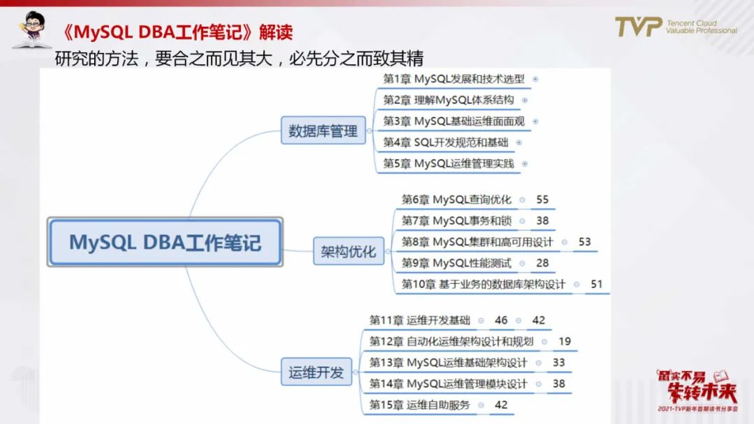 会到这本书设计的初衷,一般行业里通常看到的MySQL书是面向数据库管理的内容会多一些,而对于架构优化和运维开发的部分难以成为体系,这方面的内容是相对比较匮乏的。架构设计的难点在于很多内容是经验的沉淀,有些深度的内容篇幅过长,难以表达清楚,而且对于架构,如果说有数据库架构的共识,那么实现的方式是很难达成共识的。所以这些内容在网络上也是相对比较零散的。最后是运维开发,在运维体系中,一般都是自下而上的构建过程,相对来说,如果规划一个运维开发体系,能够让有些工作能够落地,这是一个大问题,也是一个尴尬的问题,我是从零开始学习Python,从零构建基于Python的运维开发体系,在细节上做得不尽如人意,但是至少这个技术堡垒被构建出来了,我希望呈现的也是这种设计思想和思维,而换个角度来看,现在看很多思想还是不够深入,还需要继续深入演化。