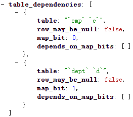 看个具体的示例,执行语句是“select e.*,d.* from emp e left join dept d on (e.deptno=d.deptno)”,如下图所示dept表作为左连接的右侧表,是依赖于左侧的emp表(编号为0)的。