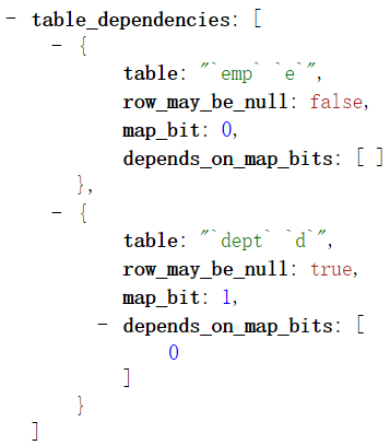 depends_on_map_bits:依赖的映射表,这里主要是在使用STRAIGHT_JOIN进行强制连接顺序或者是LEFT JOIN/RIGHT JOIN有顺序差别时,会在depends_on_map_bits中列出前置表的map_bit。