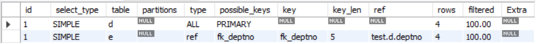 列出了所有可用的ref类型的索引,在图中显示可过滤的字段。如下例:select e.ename,d.dname from emp e,dept d where e.deptno=d.deptno;