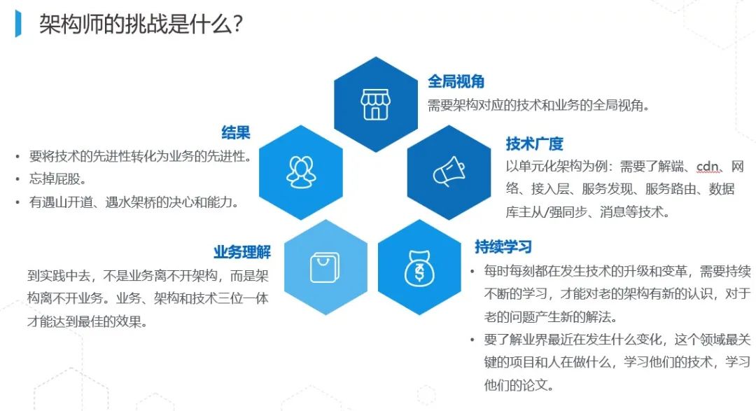 同时用户分层,内部的技术人员增多,这就倒逼我们去把复杂的问题简化,所以我会把解决复杂问题定义为架构师的一个典型角色。