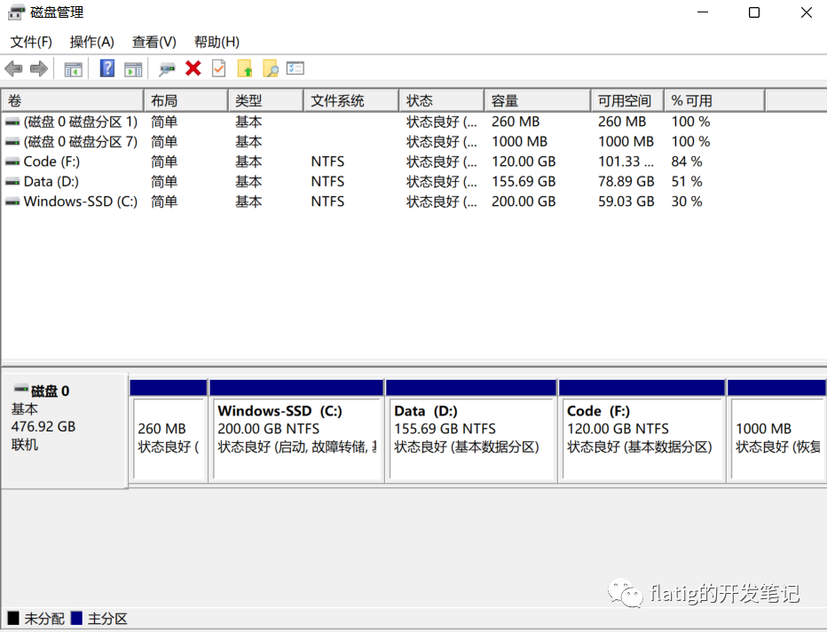 压缩完成后,工具中会出现黑色的未分配卷,到这里已经可以了,这个未分配的空间将用于安装系统。