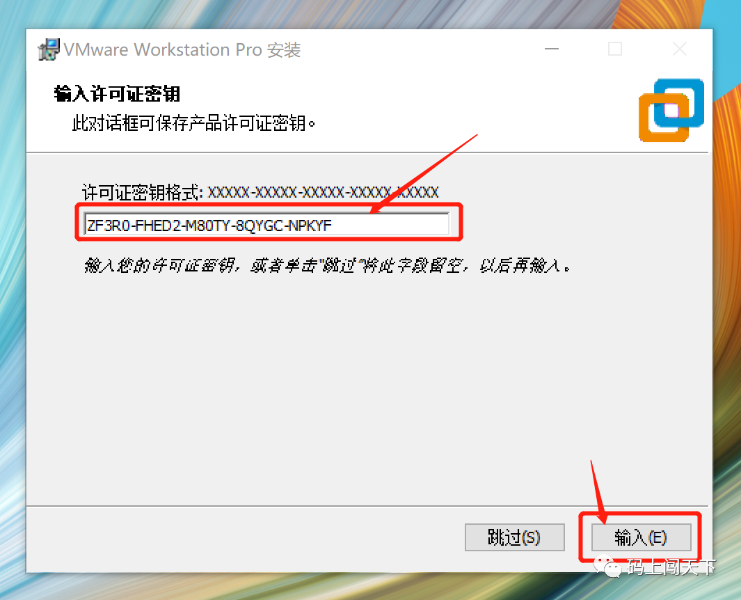输入密钥ZF3R0-FHED2-M80TY-8QYGC-NPKYF