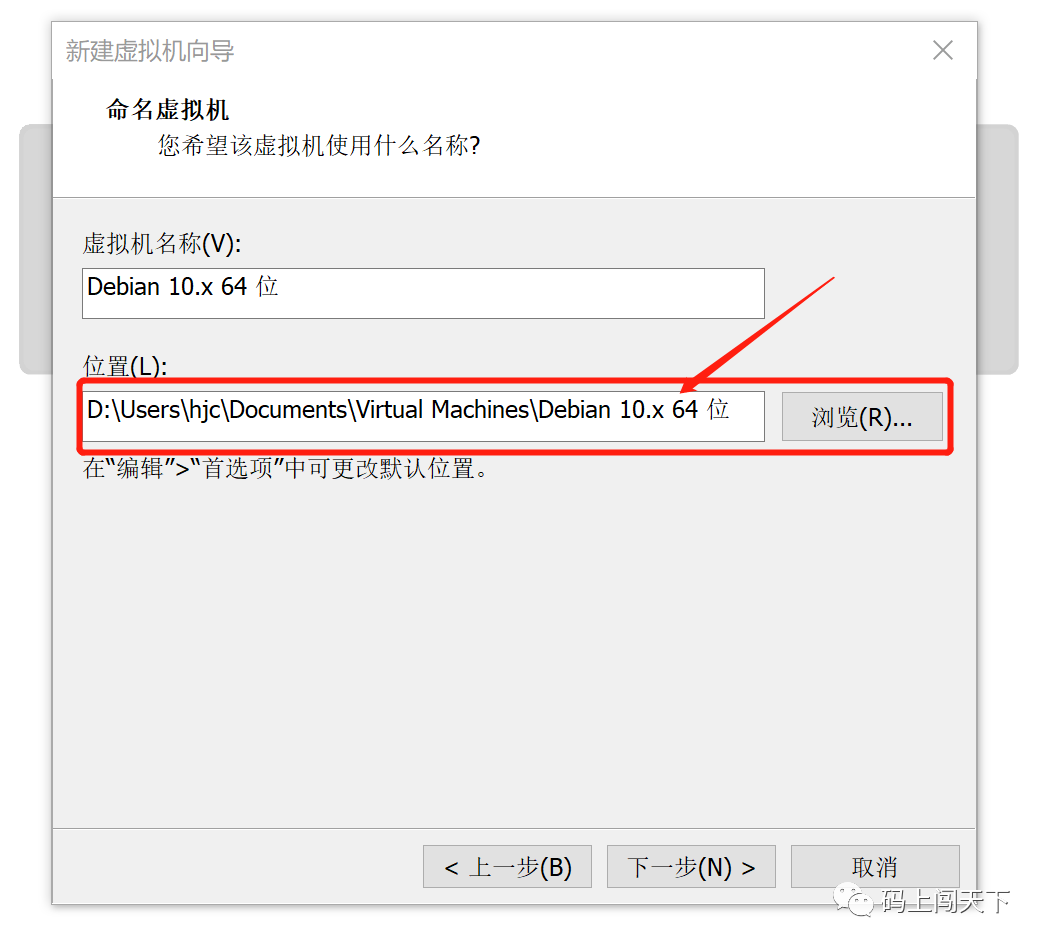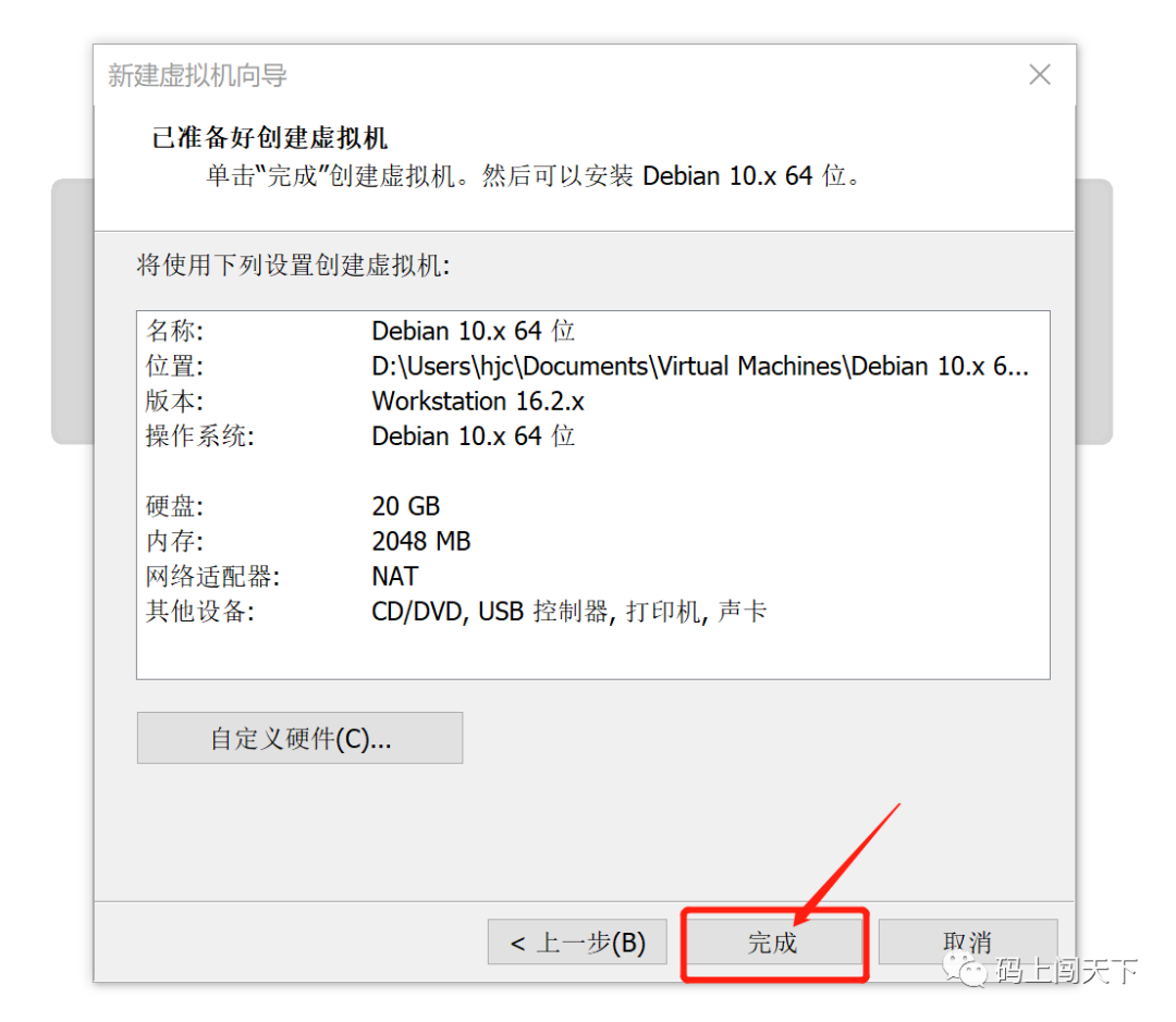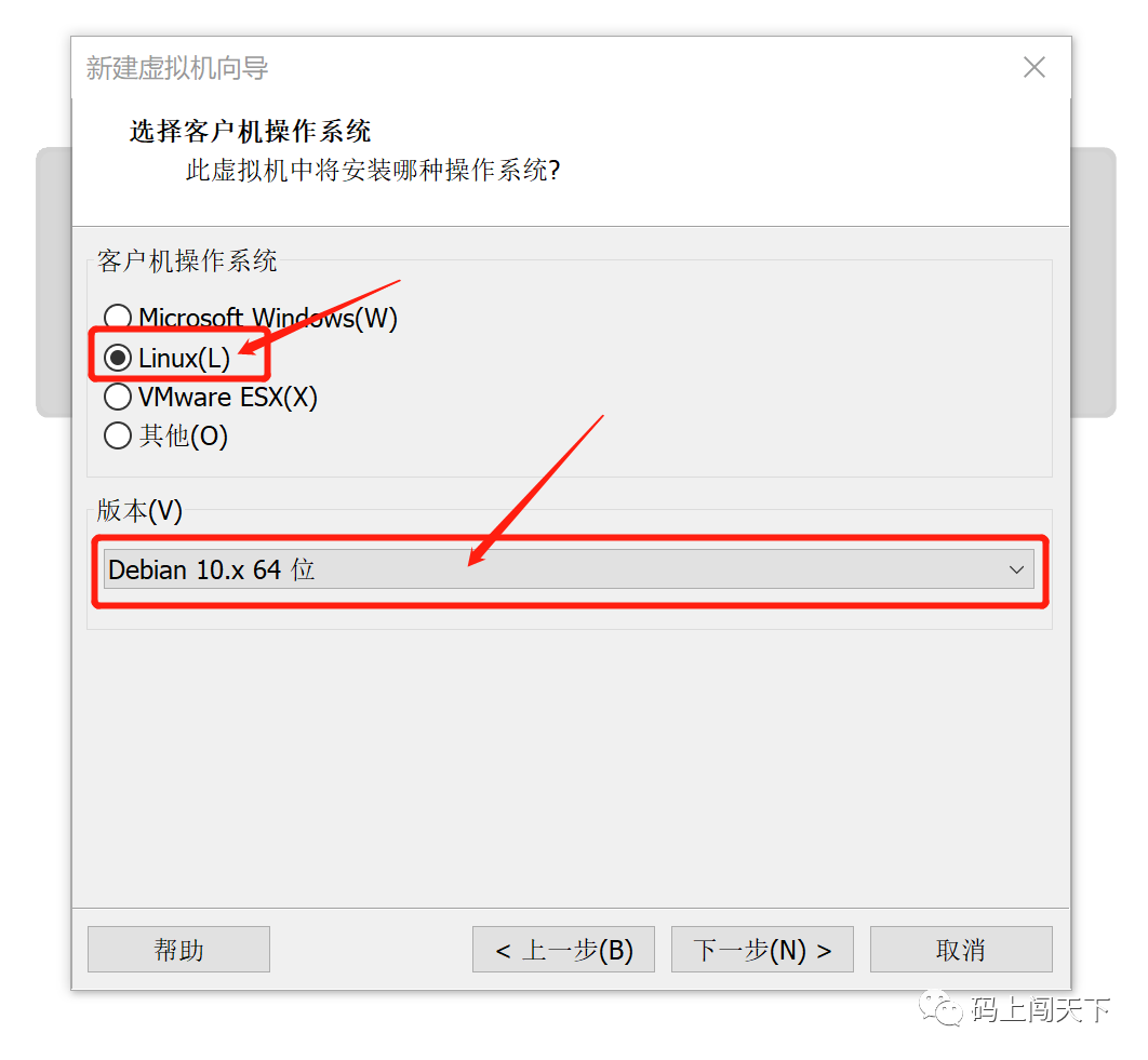 选择“Linux(L)”和“Debian 10.x 64 位”