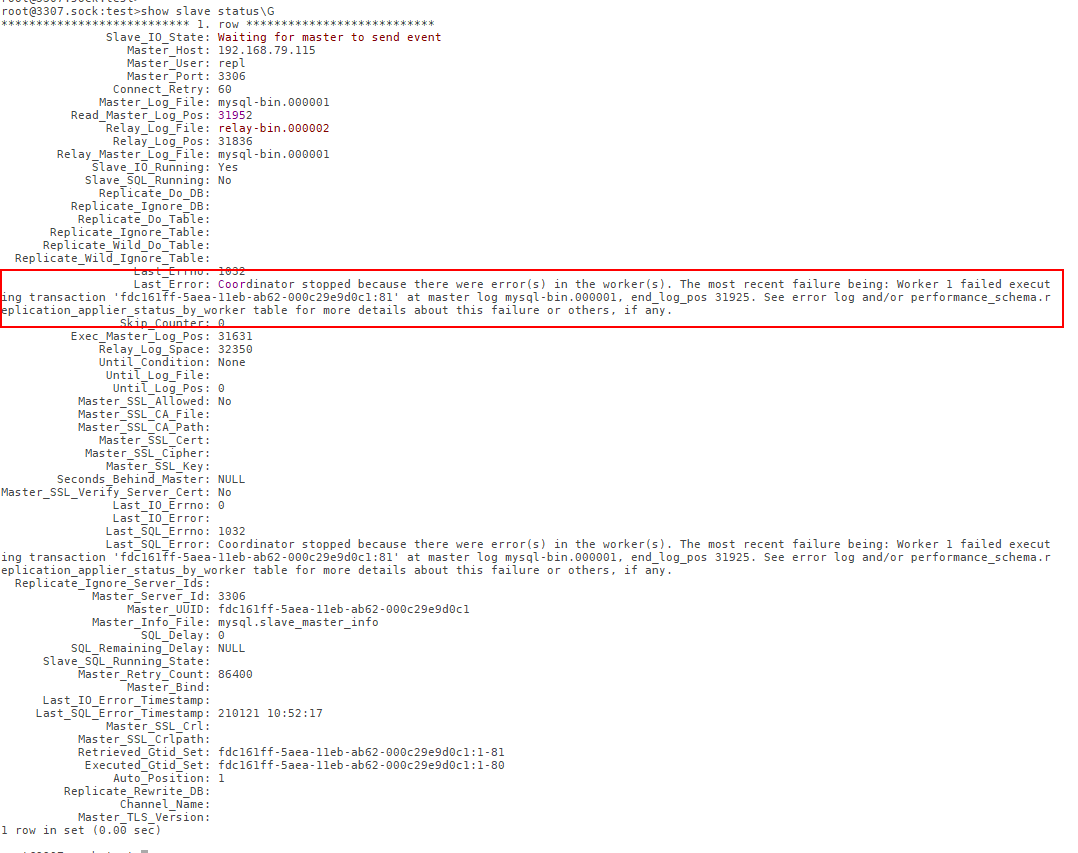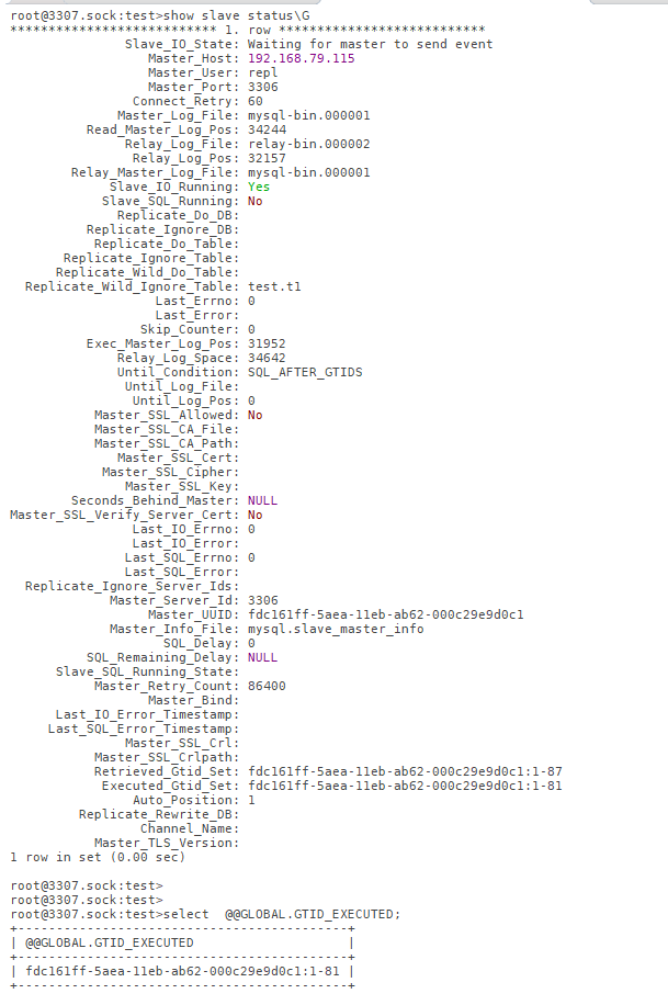 grep -A10 'GLOBAL.GTID_PURGED' t1.sql SET @@GLOBAL.GTID_PURGED='fdc161ff-5aea-11eb-ab62-000c29e9d0c1:1-81'; |