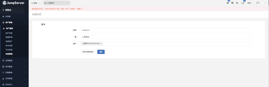 ▲ 图6 上海组织创建资产标签,标签名必须为endpoint,值的名称为上海端点