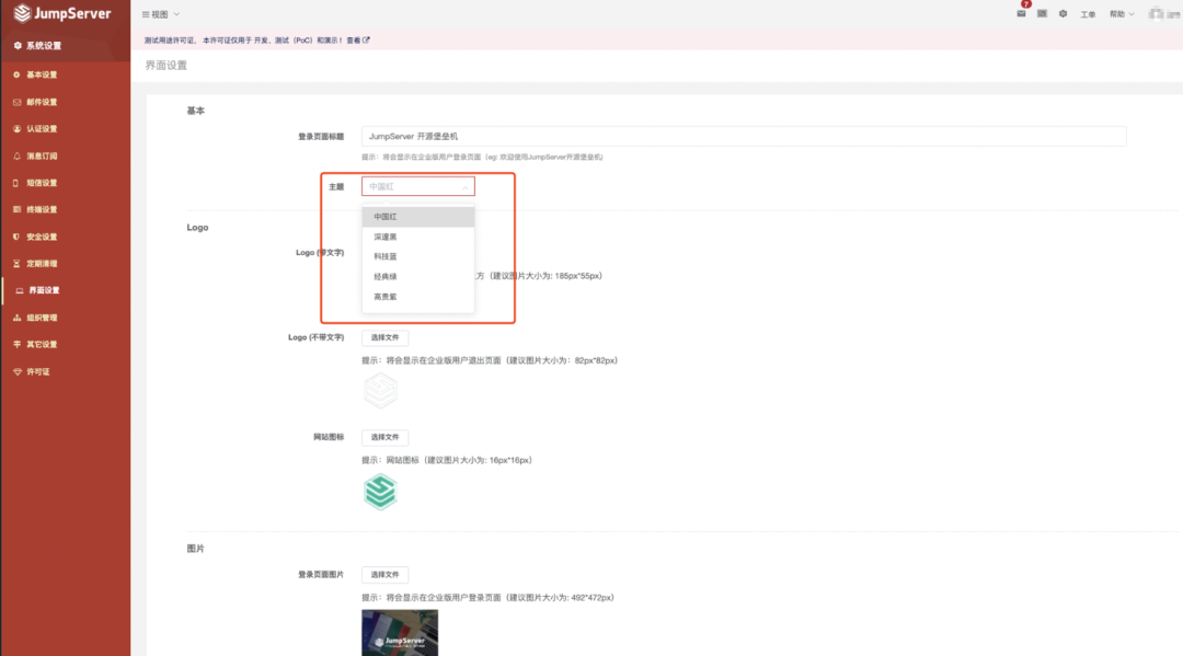 另外,这一版本的JumpServer还支持多种主题配色,例如中国红、深邃黑、科技蓝、高贵紫以及经典绿,用户可以根据自己喜好,选择相应的主题配色。