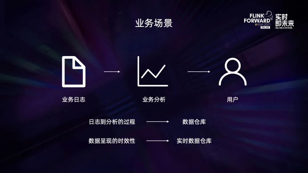 在这样一个业务流程中,业务的核心诉求是什么呢?在广告的生命周期中有请求、曝光和点击等各种行为,这些行为会产生对应的业务日志。那么就需要从日志生成数据供业务侧分析,从日志到分析的过程中就引入了数仓构建、数仓分层,数据呈现的时效性就带来了实时数据仓库的发展。