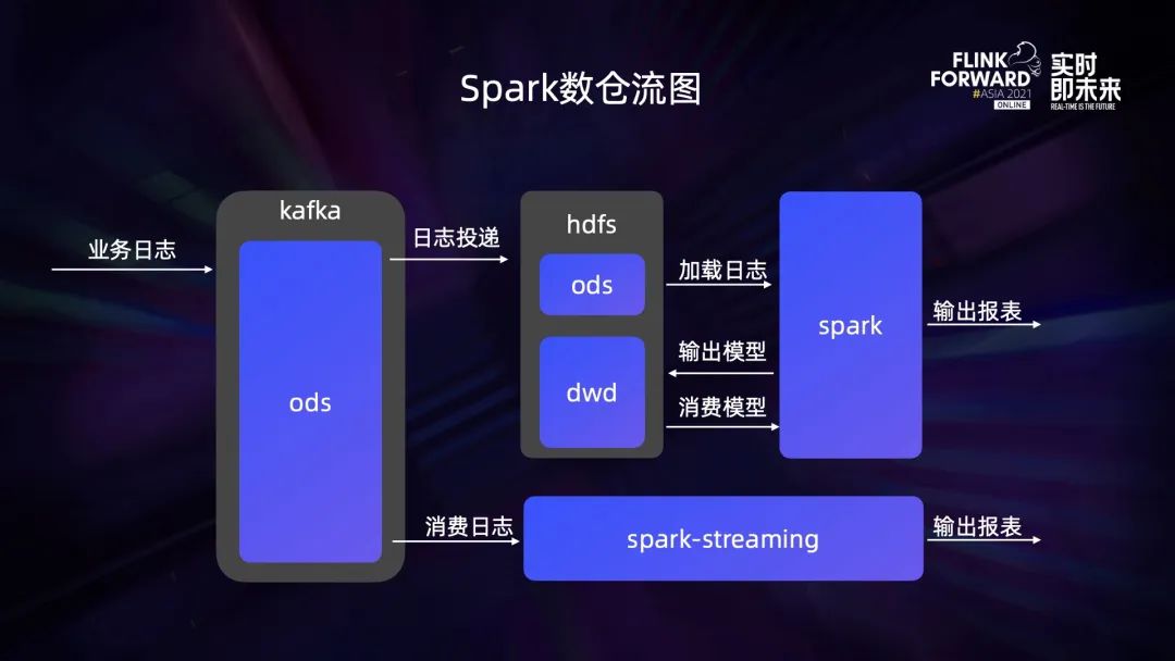 最初是建立了 Spark 数仓,将业务日志收集到 Kafka 中再投递到 HDFS 上,通过 Spark 对日志进行清洗建模,然后将业务模型再回写到 HDFS 上,再使用 Spark 对模型进行统计、分析、输出报表数据。后续,讯飞沿用了 Spark 技术栈引入了 spark-streaming。