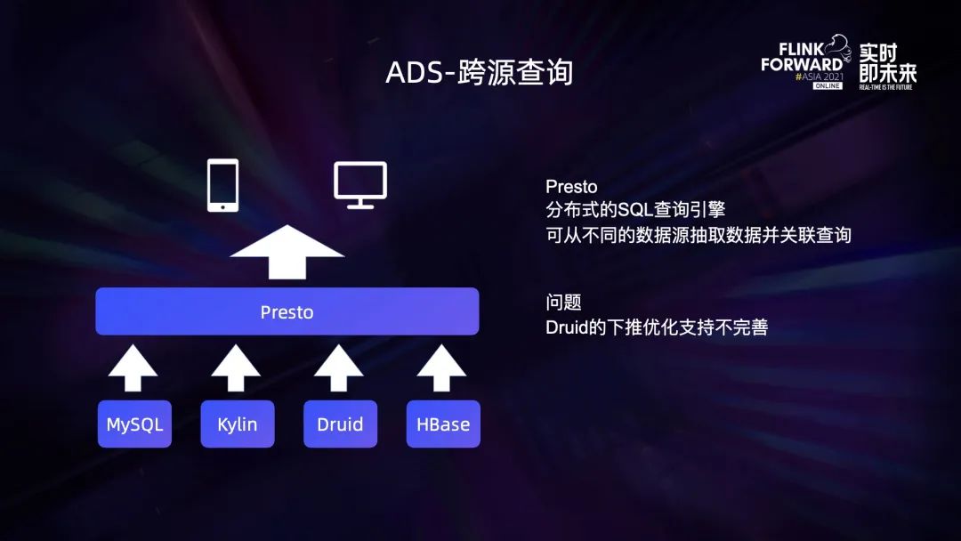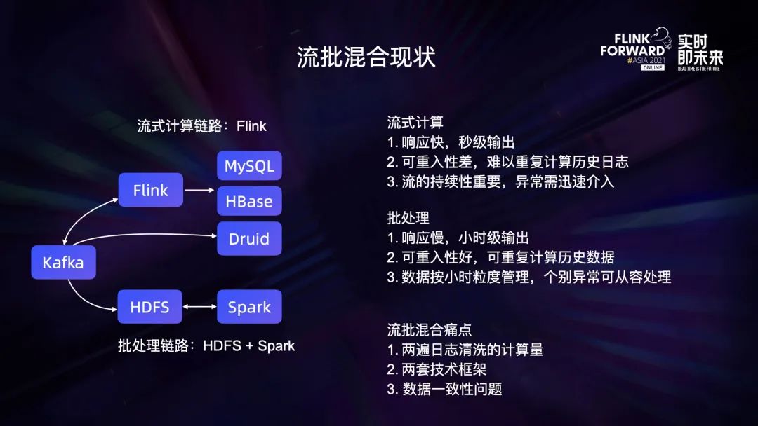 Presto 是分布式的 SQL 查询引擎,可从不同的数据源抽取数据并关联查询。但会带来 Druid 的下推优化支持不完善的问题。3.5 流批混合现状
