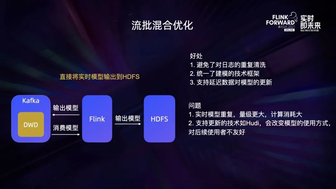流批混合优化,直接将实时模型输出到 HDFS。