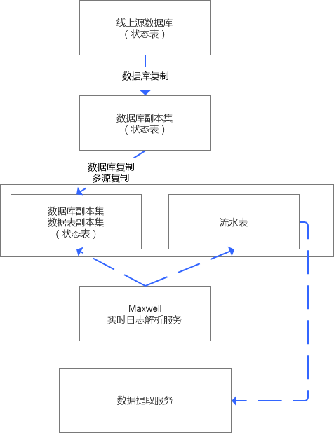 如下是一种折中的解决方案,在不需要程序修改代码的前提下,能够实时提取数据变化并实时更新同步数据状态,大体的设计思路是基于实时日志服务,在这里是Maxwell.