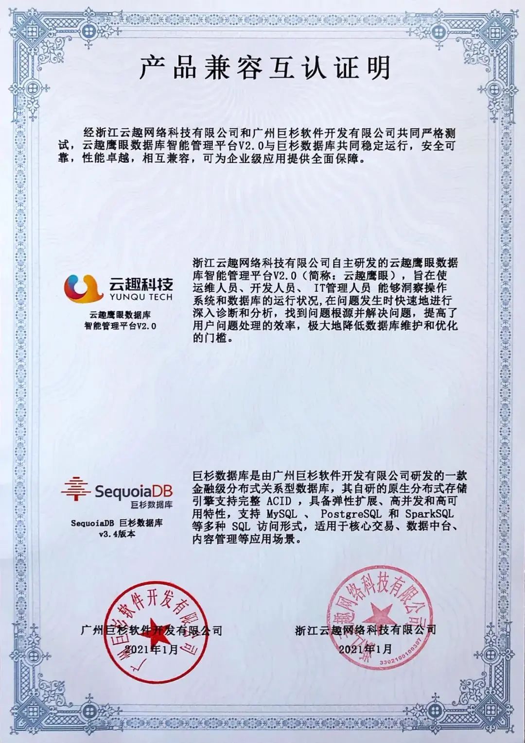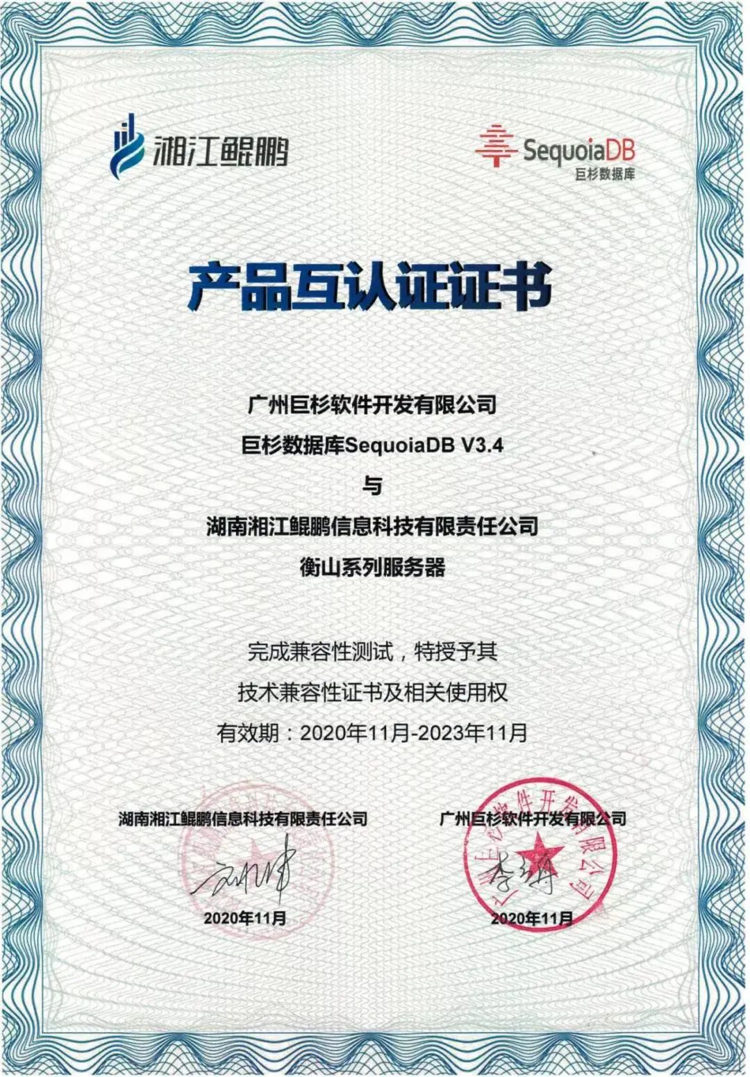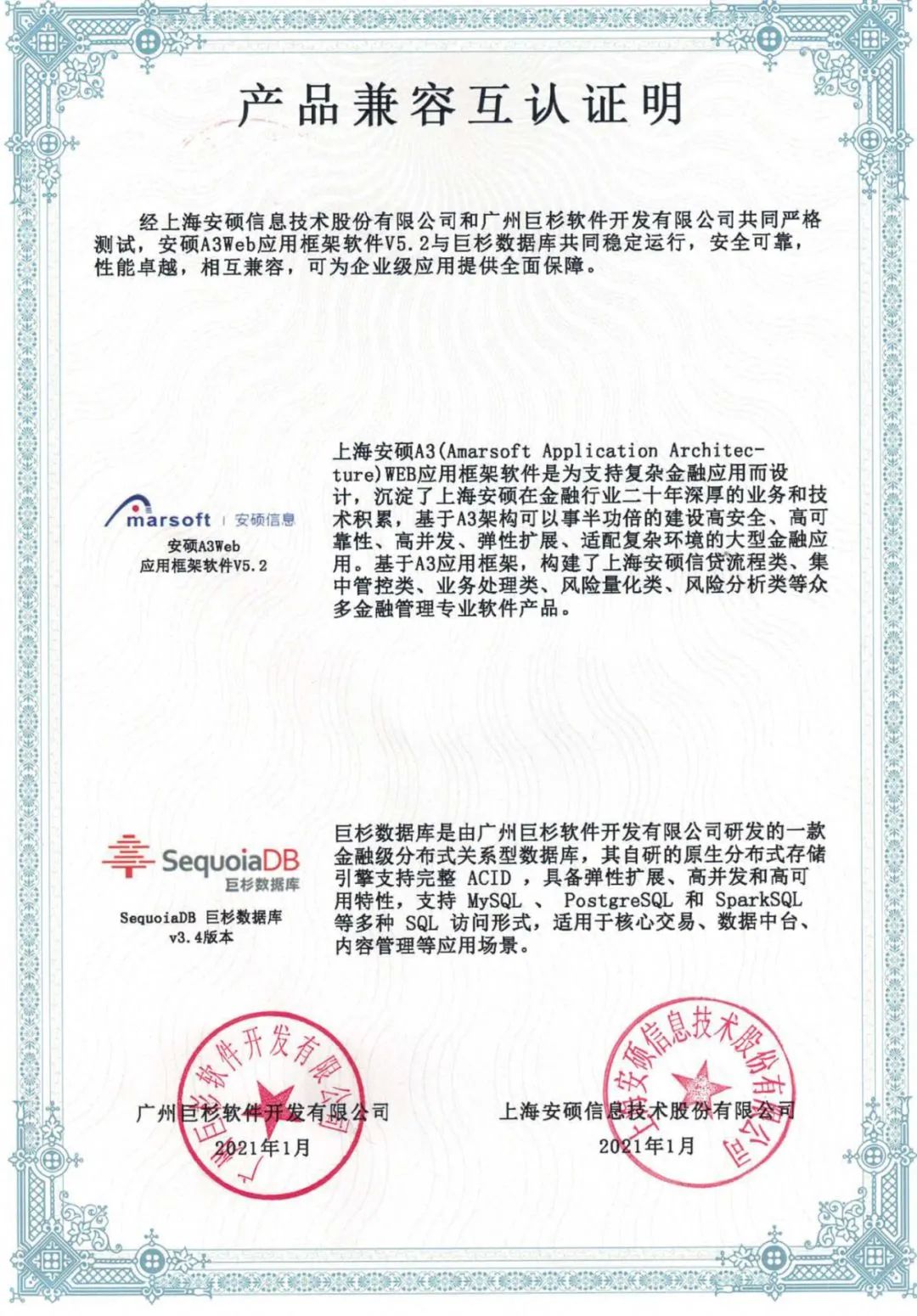 本月,巨杉数据库与湘江鲲鹏、宝德、云趣科技、安硕信息先后完成了产品兼容互认,在服务器、数据库智能管理平台、应用框架软件等领域加深合作。未来,巨杉数据库将于合作伙伴们携手,继续提高企业数据安全保护能力,降低数据安全风险,为加快我国构建关键信息基础设施安全保障体系贡献力量。