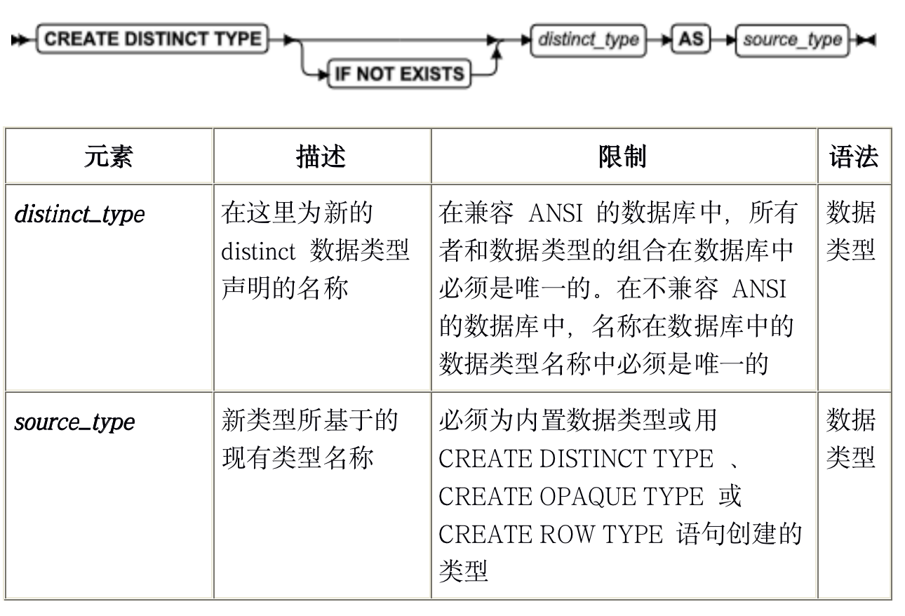 1.2CREATE DISTINCT TYPE 语句