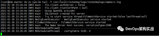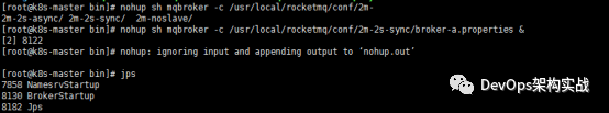 [root@k8s-master bin]# nohup sh mqbroker -c /usr/local/rocketmq/conf/2m-2s-sync/broker-a.properties &