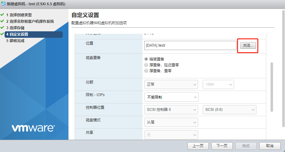 转换后把vmdk文件传输到esxi中,新建虚拟机浏览选择vmdk文件。