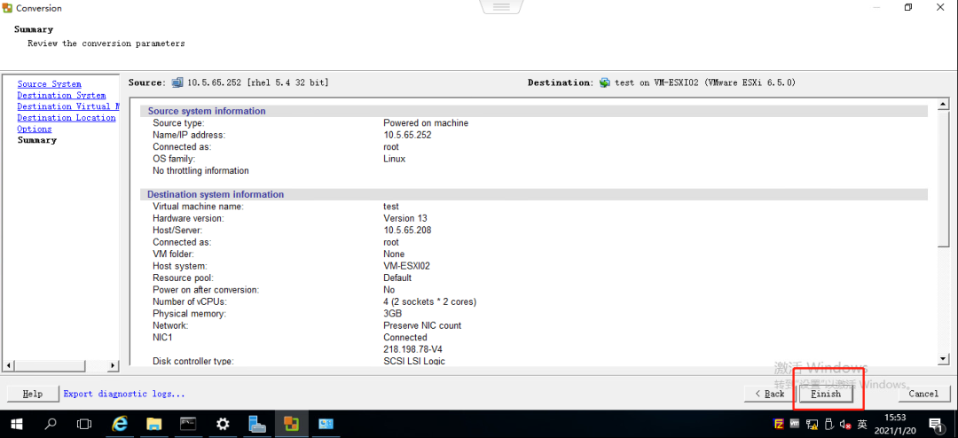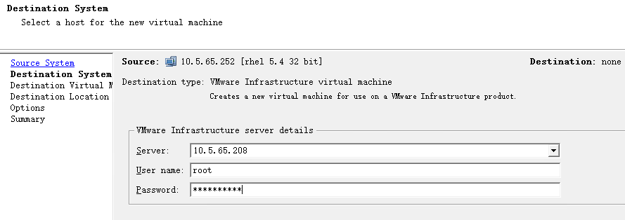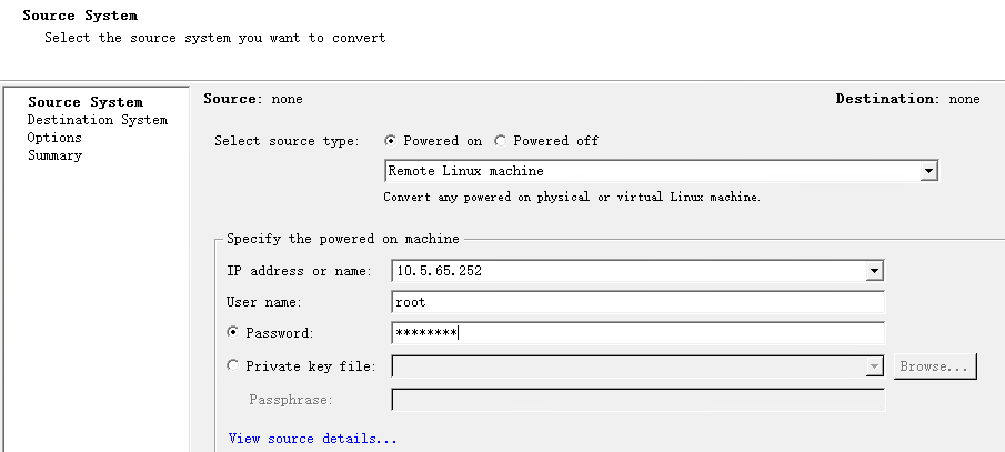 3、输入转换源信息,包括类型、IP、账号和密码。(注意转换机器到源机器的22端口要通)